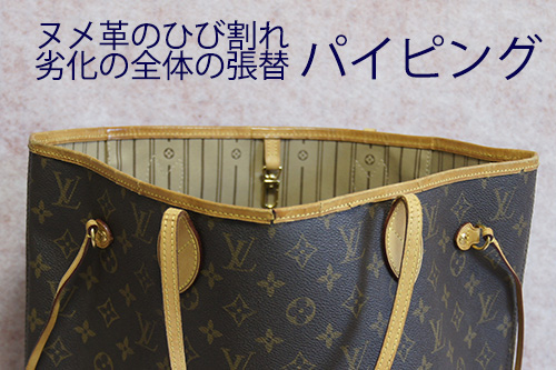 飯塚市からヌメ革のパイピング全交換修理の依頼を頂きました。