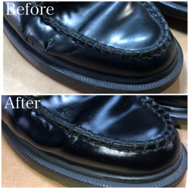 《施工内容》つま先の補修・カカト補修・パイピング補修・同色染め直し・トップコート