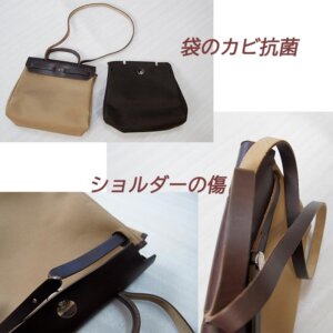 娘さんに譲りたいと思いクローゼットにしまっていた箱からだしたらびっくり使っていなかった付け替えタイプのブラウン生地がカビだらけ!! 革にも傷スレがあったので修復補色★