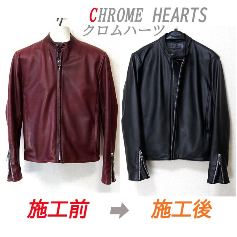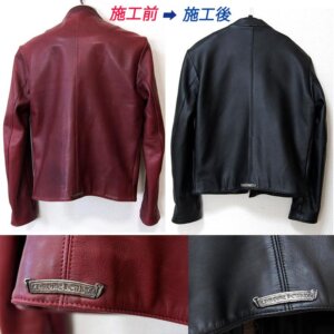 クロムハーツ Chrome Hearts 革 レザージャケット カラーチェンジ 染め直し ワインカラーからブラックカラーに