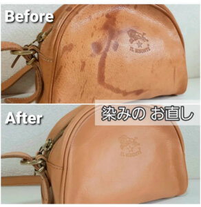 ヌメ革は水・アルコール等でのシミになるととれなくなります。