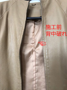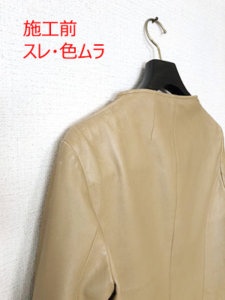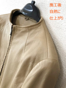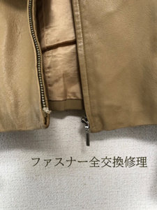 高級なラムレザーのファスナー全交換、内側の補正、色のリペアして同色で染め直しました。
