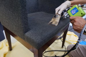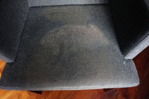 大きなシミのついた椅子をなんとかして欲しいと依頼を受けました。
