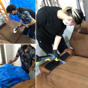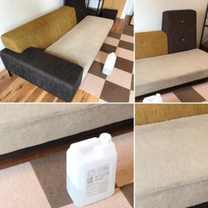下記、布・レザー・合皮のソファー・椅子・ベットマットに除菌、シミ抜き、クリーング後に空気の王様 抗菌コートを行います
