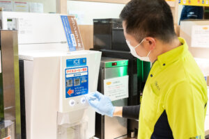 また、トイレやドリンクバー、子供用椅子、メニューなども「空気の王様/抗菌・抗ウィルスコーティング」を施工。安心して店内でお過ごし頂ける環境についても調査します。
