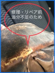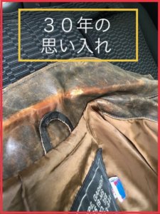 30年物の革ジャケット日頃は、自分でクリーニングされてきれいですが、革の油分不足で劣化が始まっていました。