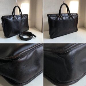 すれ汚れい劣化があり、まずは、革の保湿から行いました。今回はブラウンからブラックにカラーチェンジ